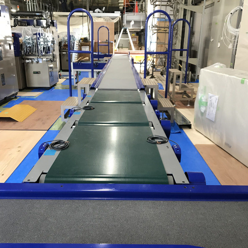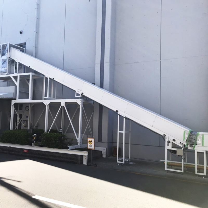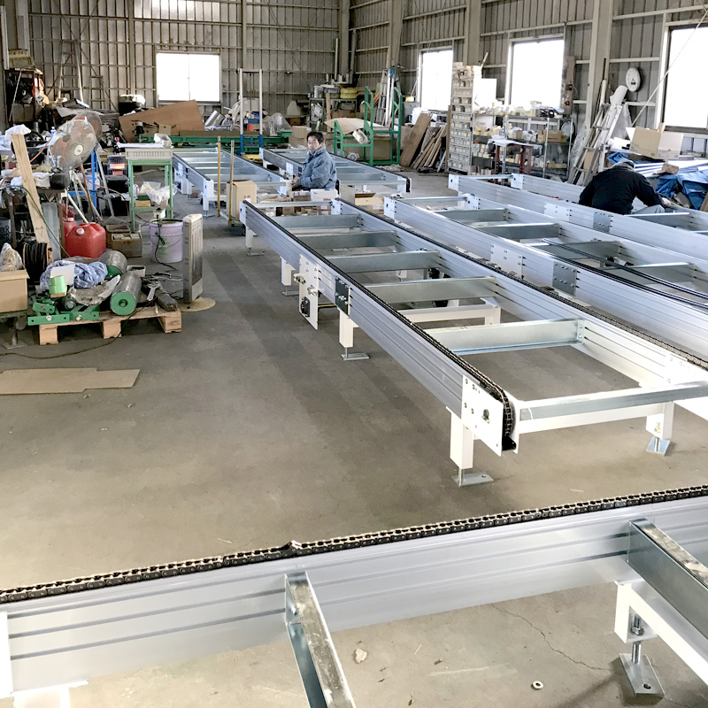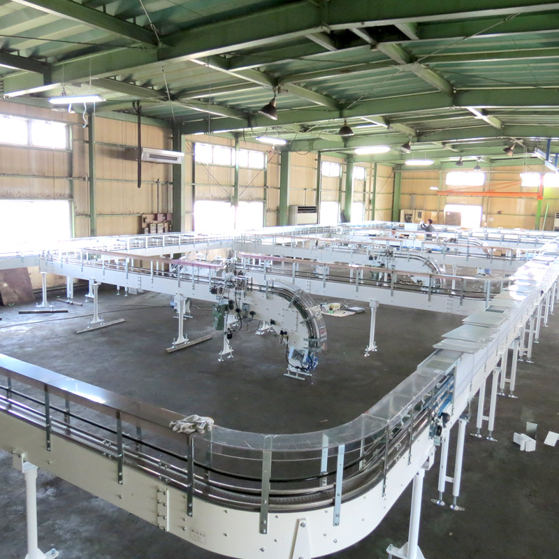 - 現在は、機械メーカーを経由して大手食品容器工場や新聞発送工場へコンベア製品や架台関係の製品を納入しています。